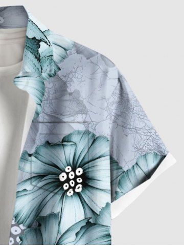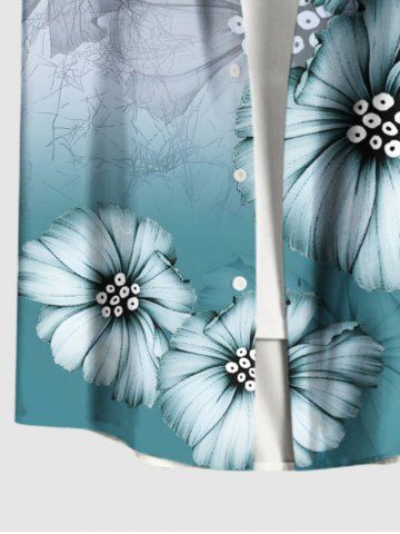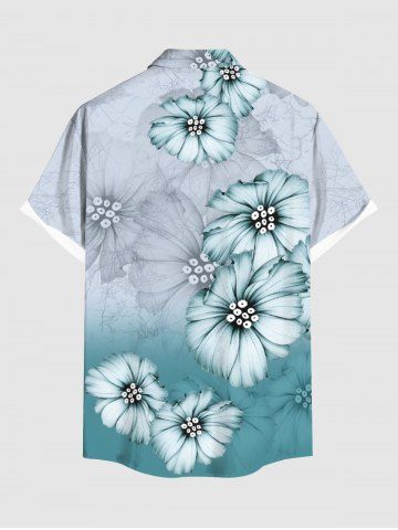 Plus Size Ombre Flower Print Hawaii Button Pocket Shirt For Men - Green - 2xl