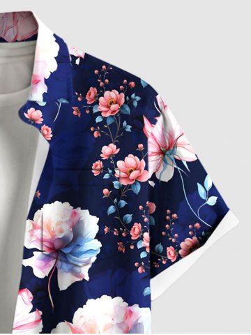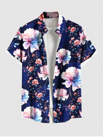 Plus Size Ombre Flower Print Hawaii Button Pocket Shirt For Men - Blue - L