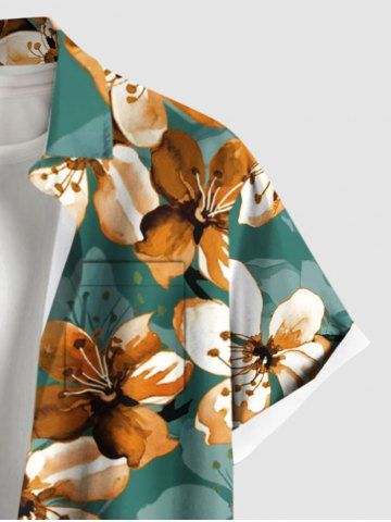 Plus Size Ombre Flower Print Hawaii Button Pocket Shirt For Men - Green - 4xl