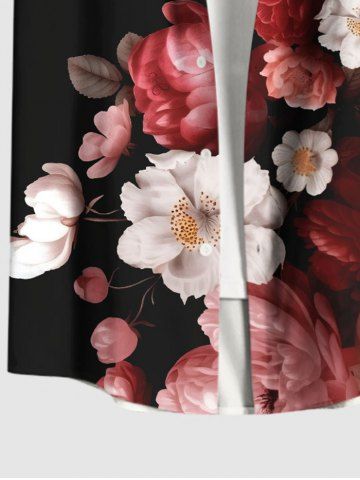 Plus Size Ombre Flower Print Hawaii Button Pocket Shirt For Men - Black - 2xl