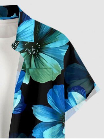 Plus Size Ombre Flower Print Hawaii Button Pocket Shirt For Men - Sky Blue - Xl