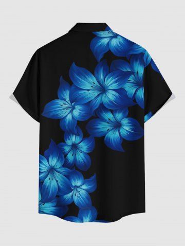 Plus Size Ombre Flower Print Hawaii Button Pocket Shirt For Men - Black - 5xl
