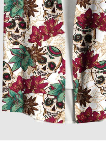 Plus Size Ombre Flower Skull Print Hawaii Button Pocket Shirt For Men - Red - 3xl
