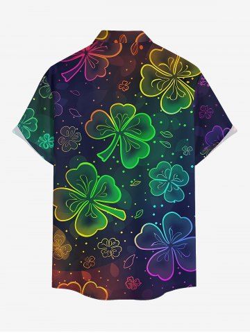 Short Sleeves Shirts > Plus Size Ombre Four Leaf Clover Print St. Patrick's Day Button Pocket Shirt For Men
