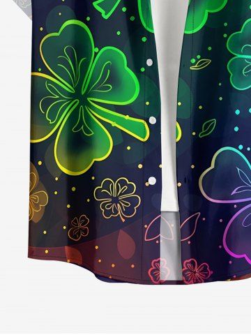 Plus Size Ombre Four Leaf Clover Print St. Patrick's Day Button Pocket Shirt For Men - Concord - 2xl