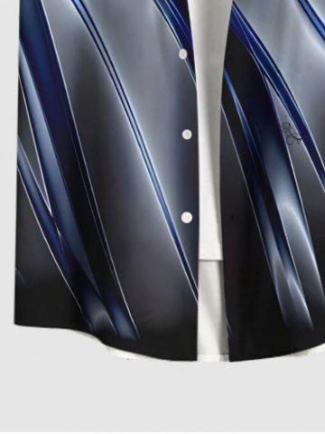 Plus Size Ombre Glitter Light Beam 3D Print Buttons Pocket Hawaii Shirt For Men - Black - M