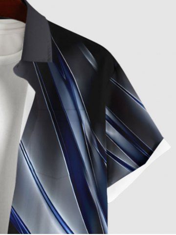 Plus Size Ombre Glitter Light Beam 3D Print Buttons Pocket Hawaii Shirt For Men - Black - L