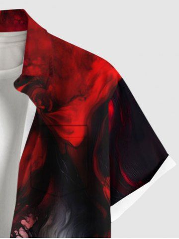 Plus Size Ombre Ink Painting Print Buttons Pocket Hawaii Shirt For Men - Black - 3xl