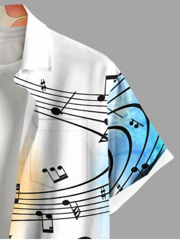 Short Sleeves Shirts > Plus Size Ombre Leaf Music Symbol Print Hawaii Button Pocket Shirt For Men