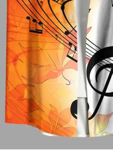 Plus Size Ombre Leaf Music Symbol Print Hawaii Button Pocket Shirt For Men - Orange - 4xl
