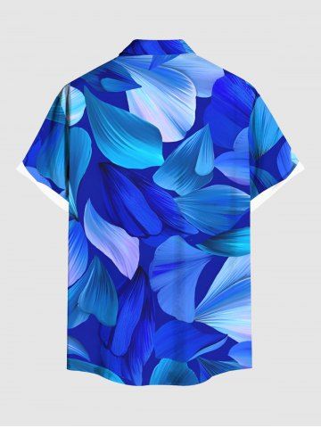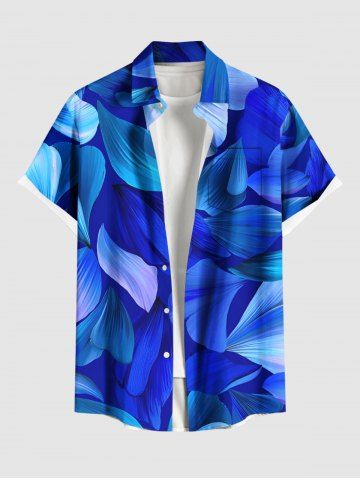 Plus Size Ombre Leaf Print Buttons Pocket Hawaii Shirt For Men - Blue - 5xl