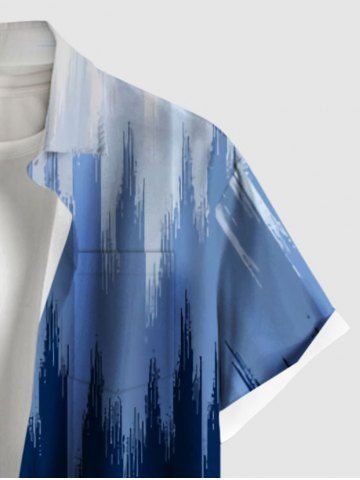 Plus Size Ombre Light Beam Print Hawaii Button Pocket Shirt For Men - Deep Blue - 3xl