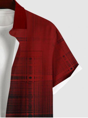 Plus Size Ombre Plaid Colorblock Print Buttons Pocket Hawaii Shirt For Men - Deep Red - M