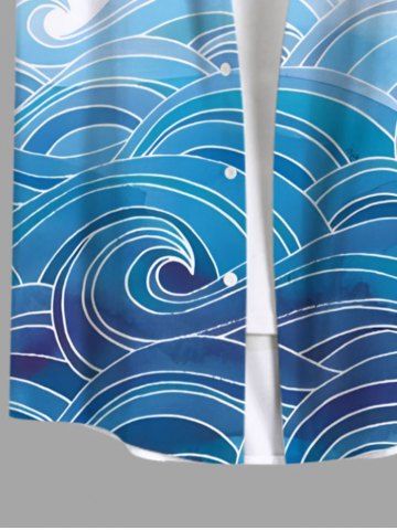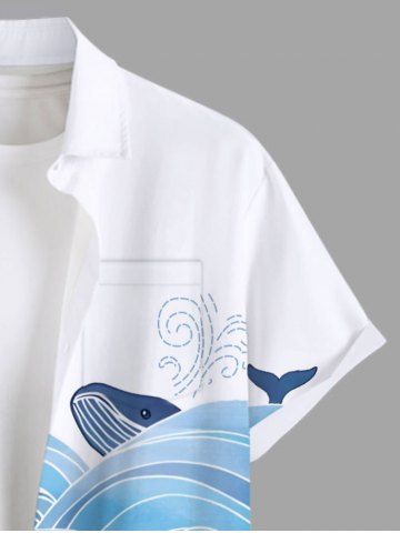 Plus Size Ombre Sea Wave Shark Print Hawaii Button Pocket Shirt For Men - White - M