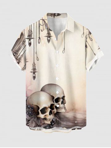 Short Sleeves Shirts > Plus Size Ombre Skulls Print Button Pocket Shirt For Men