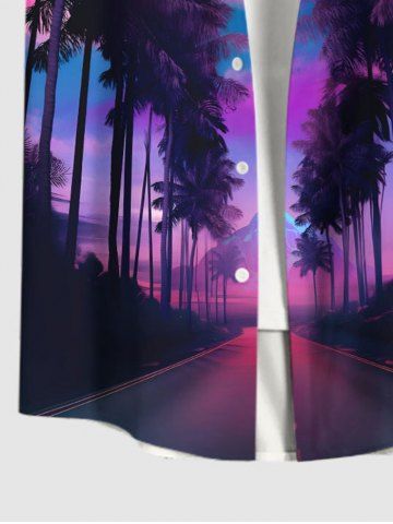 Plus Size Ombre Sky Coconut Tree Print Buttons Pocket Hawaii Shirt For Men - Purple - M