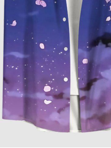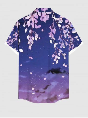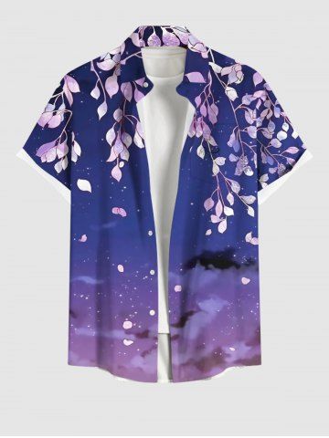 Plus Size Ombre Sky Galaxy Cloud Leaf Branch Print Hawaii Button Pocket Shirt For Men - Multi-a - 4xl