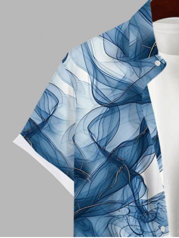 Plus Size Ombre Smoke Print Hawaii Button Pocket Shirt For Men - White - 5xl