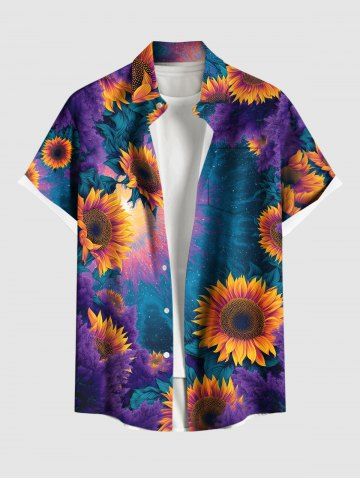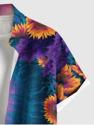 Short Sleeves Shirts > Plus Size Ombre Sunflower Sea Print Hawaii Button Pocket Shirt For Men