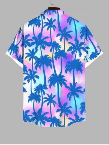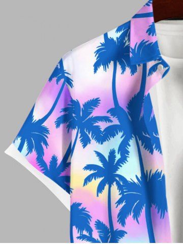 Plus Size Ombre Tie Dye Coconut Tree Print Buttons Pocket Hawaii Shirt For Men - Multi-a - 3xl
