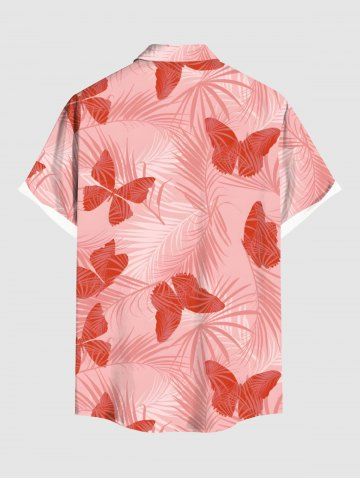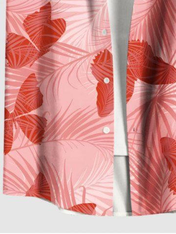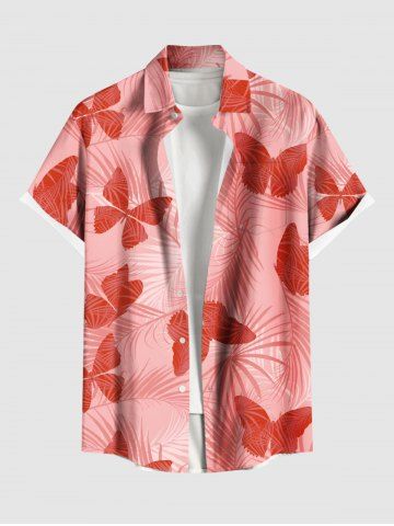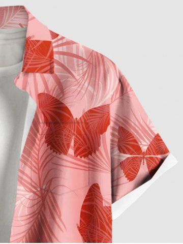 Plus Size Ombre Tropical Leaf Butterfly Print Hawaii Button Pocket Shirt For Men - Red - L