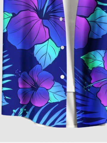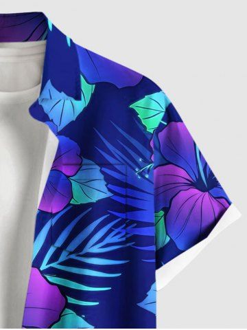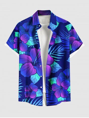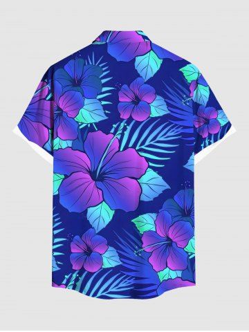 Plus Size Ombre Tropical Leaves Hibiscus Floral Print Hawaii Button Pocket Shirt For Men - Blue - 5xl