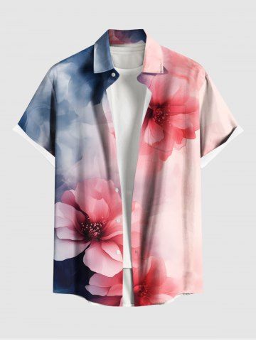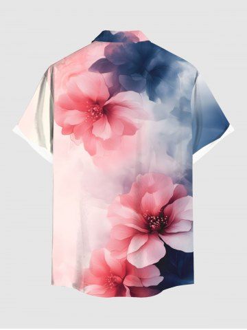 Short Sleeves Shirts > Plus Size Ombre Watercolor Flower Print Hawaii Button Pocket Shirt For Men