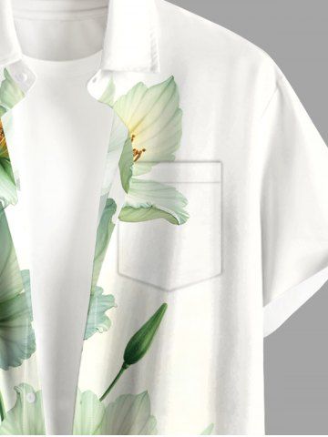 Plus Size Ombre Watercolor Flower Print Hawaii Button Pocket Shirt For Men - Green - 2xl