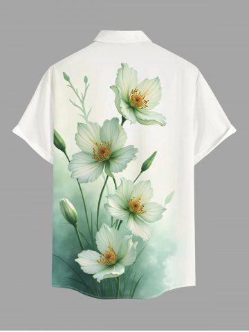 Short Sleeves Shirts > Plus Size Ombre Watercolor Flower Print Hawaii Button Pocket Shirt For Men