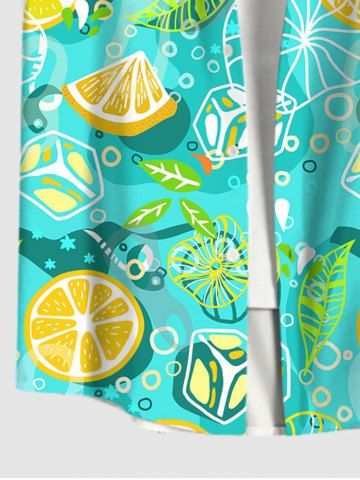 Plus Size Orange Ice Cubes Mint Leaf Print Buttons Pocket Hawaii Shirt For Men - Green - 4xl