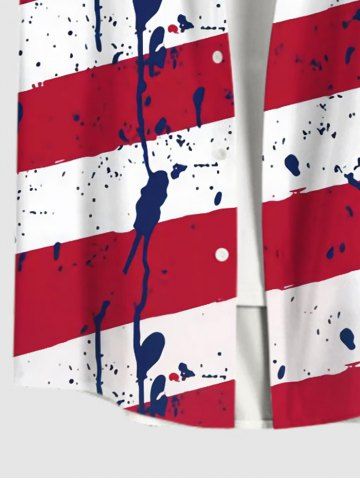 Short Sleeves Shirts > Plus Size Painting Splatter Patriotic American Flag Print Button Pocket Shirt For Men