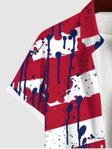 Short Sleeves Shirts > Plus Size Painting Splatter Patriotic American Flag Print Button Pocket Shirt For Men