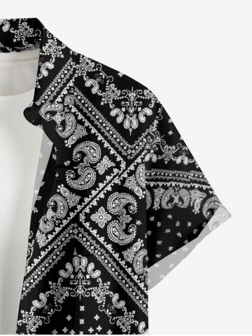 Plus Size Paisley Floral Scarf Print Buttons Pocket Hawaii Shirt For Men - Black - 2xl