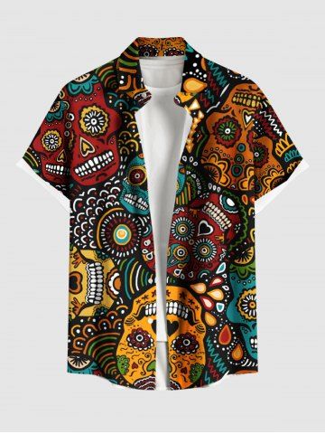 Short Sleeves Shirts > Plus Size Paisley Floral Skulls Print Buttons Pocket Hawaii Shirt For Men