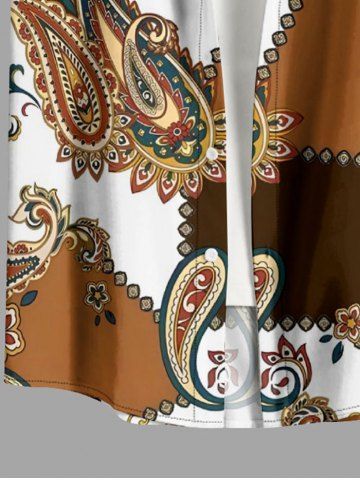 Plus Size Paisley Geometric Colorblock Print Hawaii Button Pocket Shirt For Men - Brown - S