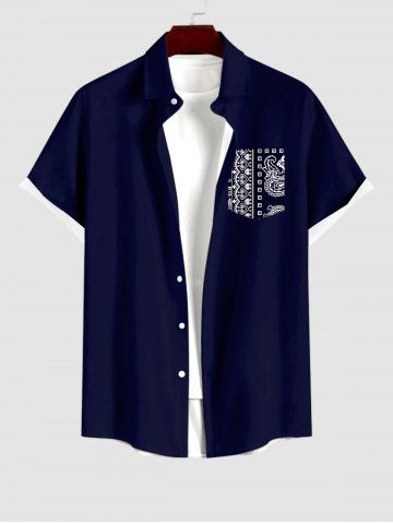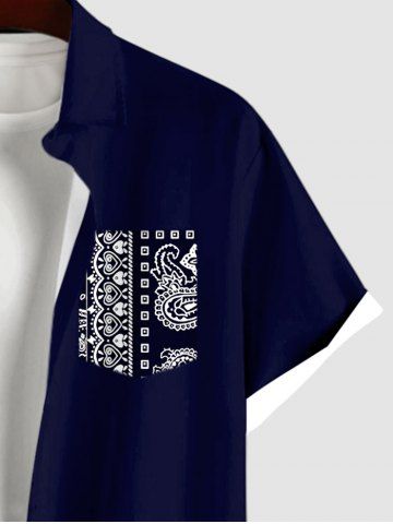 Short Sleeves Shirts > Plus Size Paisley Scarf Graphic Print Button Pocket Shirt For Men