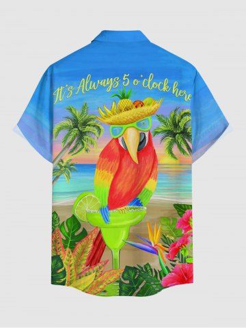 Short Sleeves Shirts > Plus Size Parrot Coconut Tree Flowers Seascape Print Buttons Pocket Hawaii Shirt For Men