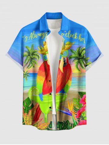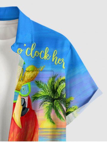 Plus Size Parrot Coconut Tree Flowers Seascape Print Buttons Pocket Hawaii Shirt For Men - Light Blue - Xl