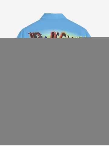 Plus Size Parrot Flower Coconut Tree Clock Print Buttons Pocket Hawaii Shirt For Men - Blue - S
