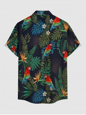 Plus Size Parrot Flowers Tropical Leaf Print Buttons Pocket Hawaii Shirt For Men - Black - 2xl