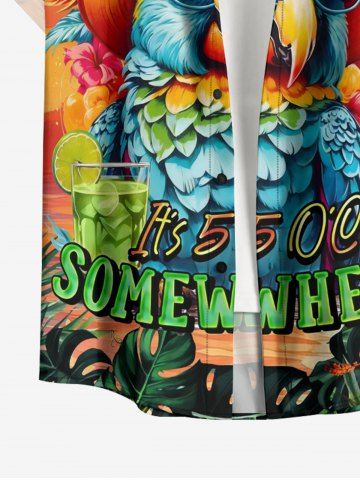 Short Sleeves Shirts > Plus Size Parrot Fruit Juice Flower Tropical Leaf Print Buttons Pocket Hawaii Shirt For Men