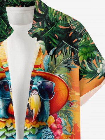 Plus Size Parrot Fruit Juice Flower Tropical Leaf Print Buttons Pocket Hawaii Shirt For Men - Dark Orange - 3xl