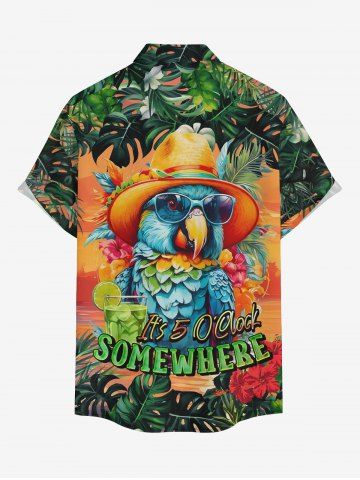 Short Sleeves Shirts > Plus Size Parrot Fruit Juice Flower Tropical Leaf Print Buttons Pocket Hawaii Shirt For Men