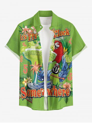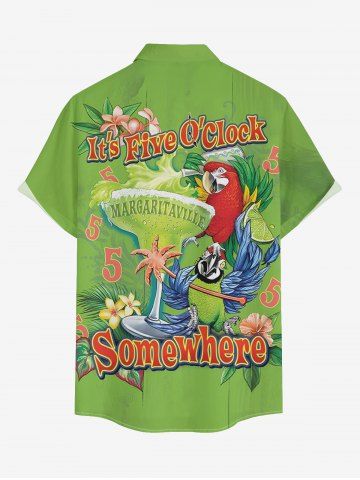 Plus Size Parrot Fruit Juice Flowers Leaf Print Buttons Pocket Hawaii Shirt For Men - Green - Xl