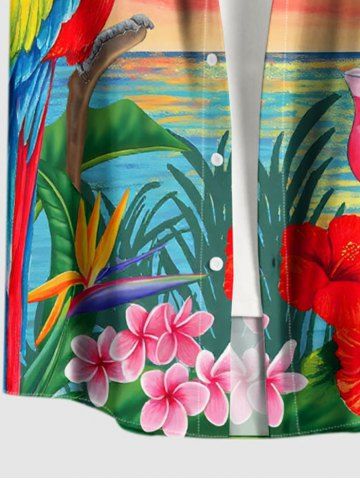 Plus Size Parrot Fruit Juice Hibiscus Flower Leaf Print Buttons Pocket Hawaii Shirt For Men - Pink - Xl