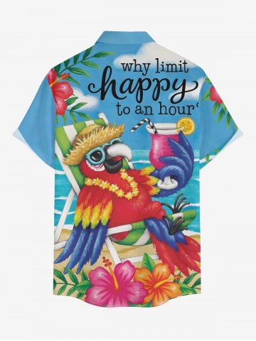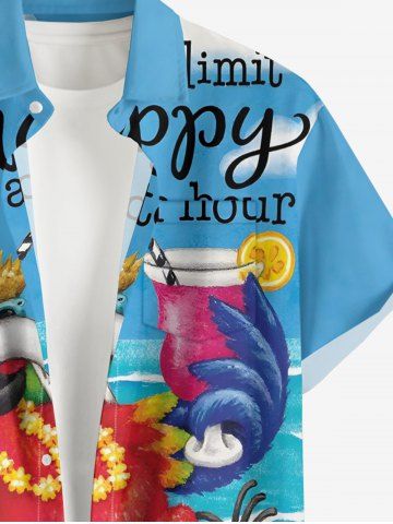 Plus Size Parrot Fruit Juice Hibiscus Flower Seascape Print Buttons Pocket Hawaii Shirt For Men - Blue - M
