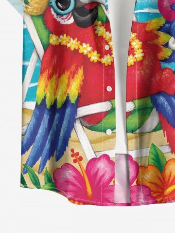 Plus Size Parrot Fruit Juice Hibiscus Flower Seascape Print Buttons Pocket Hawaii Shirt For Men - Blue - 2xl