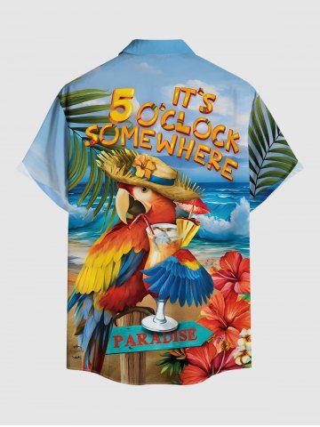 Plus Size Parrot Fruit Juice Hibiscus Flowers Sea Waves Print Buttons Pocket Hawaii Shirt For Men - Light Blue - 5xl