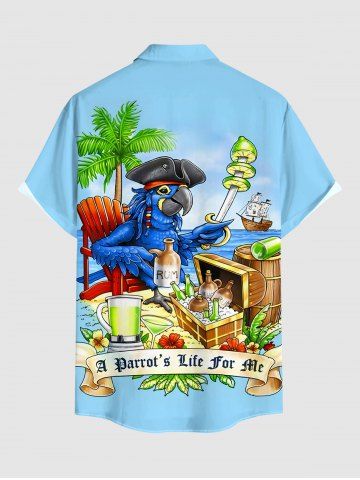 Plus Size Parrot Pirate Coconut Tree Fruit Juice Skull Flowers Print Buttons Pocket Hawaii Shirt For Men - Powder Blue - 4xl