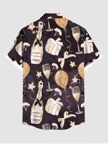 Plus Size Party New Years Eve Gift Balloon Bowknot Wine Print Button Pocket Shirt For Men - Black - 2xl